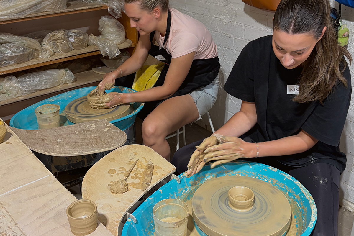 We use our own Slow Clay wheel technique, a structured method we’ve developed and refined over years of teaching beginners.